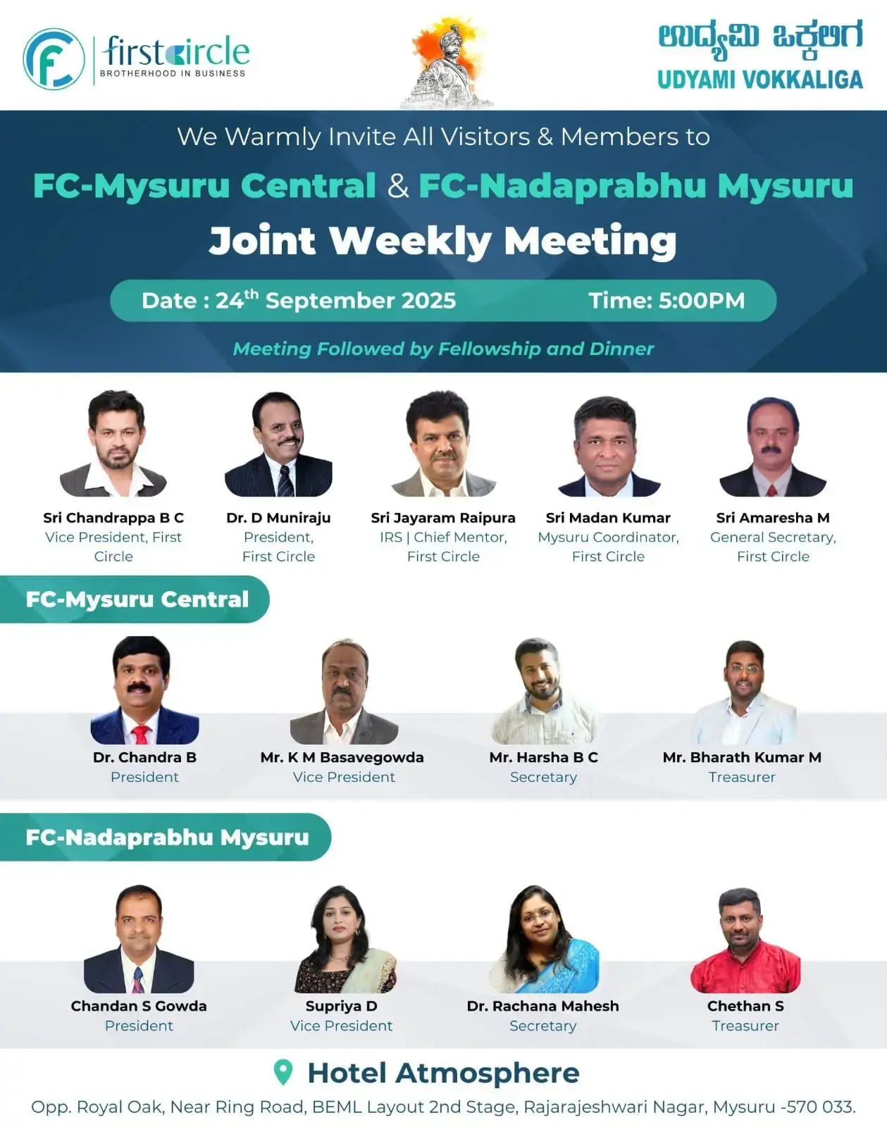 We Warmly Invite All Visitors & Members to FC-Mysuru Central & FC-Nadaprabhu Mysuru Joint Weekly Meeting.